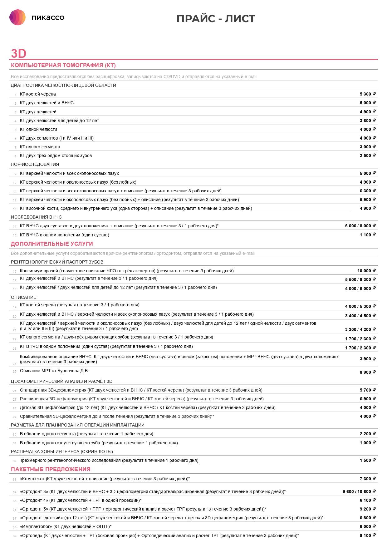 Рентгенологический паспорт зубов по КТ двух челюстей и ВНЧС