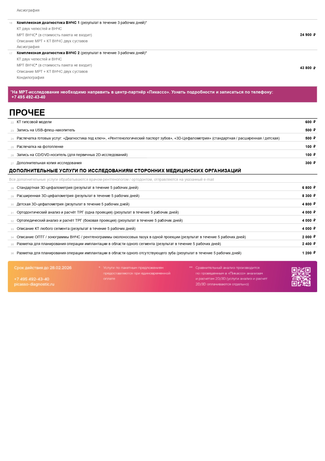 Распечатка готового пакетного предложения «Диагностика под ключ»
